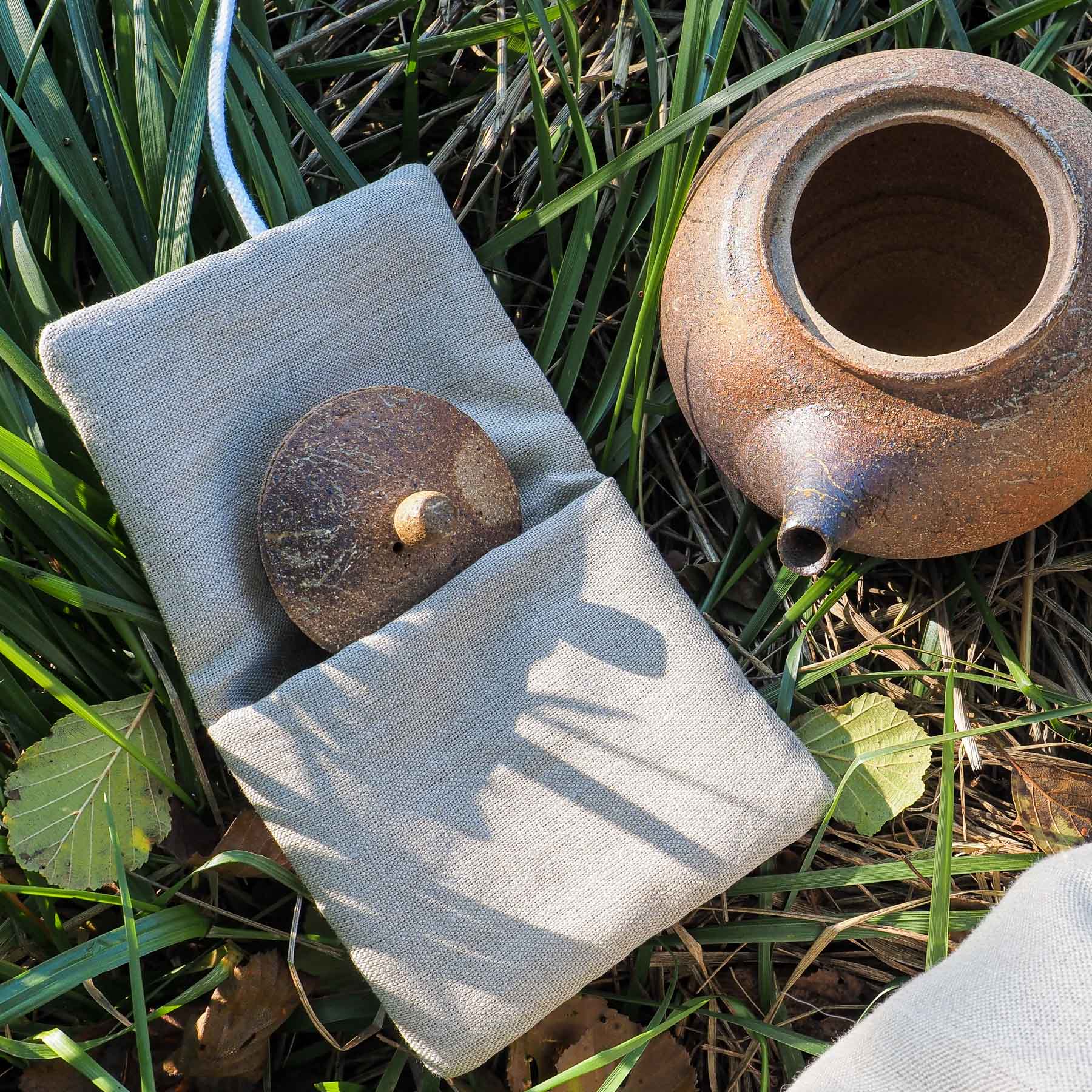 This bag was created for a really big side handle teapot with a ceramic handle (800-1000 ml, 10+ person teapot size). Has 3 types of soft paddings inside to protect the body and handle of a teapot. Created in such a way that fits almost all shapes of the handles. Suitable both for left-handed and right-handed ones.