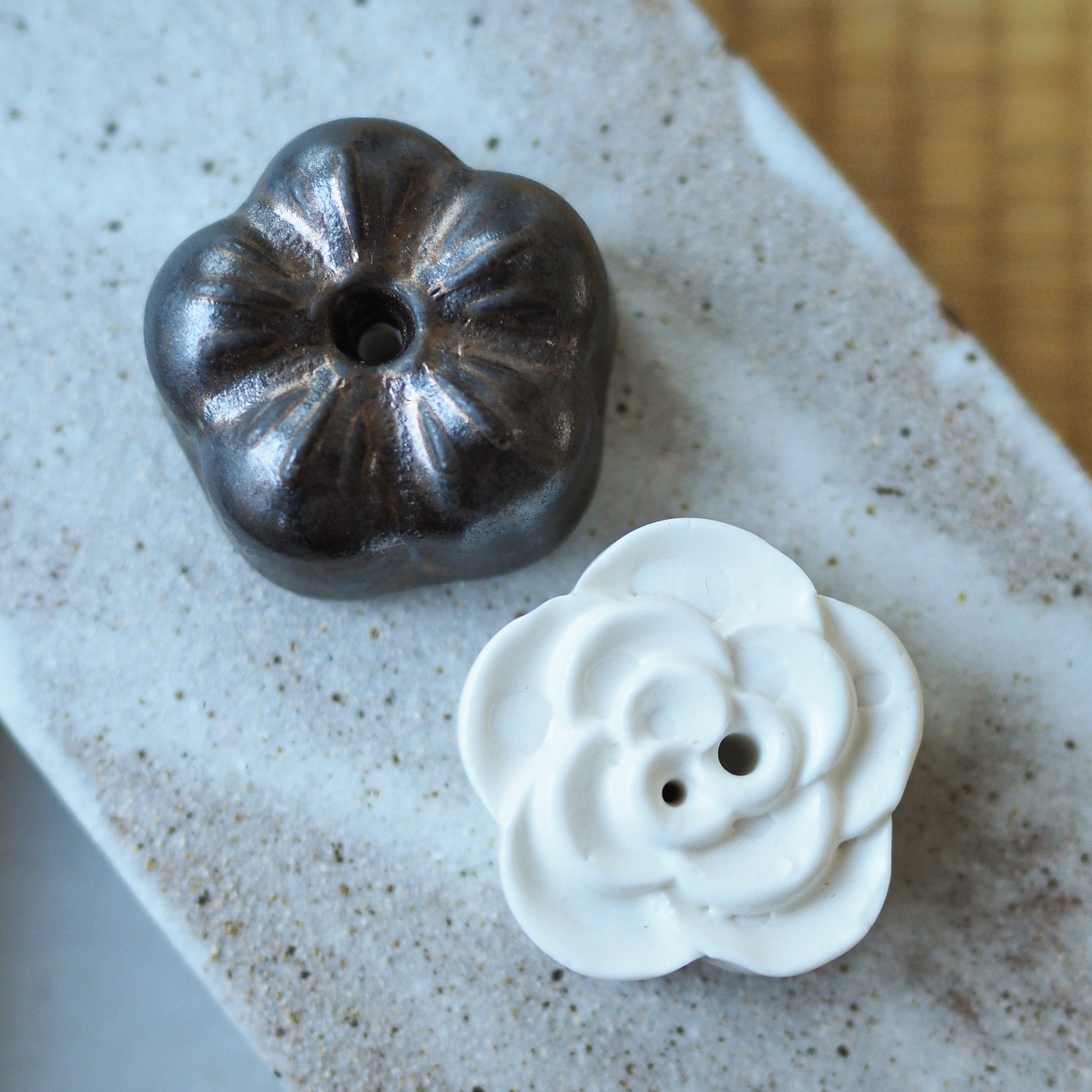 Delicate White Rose and elegant Golden-Black Plum Blossom handcrafted from the finest porcelain
