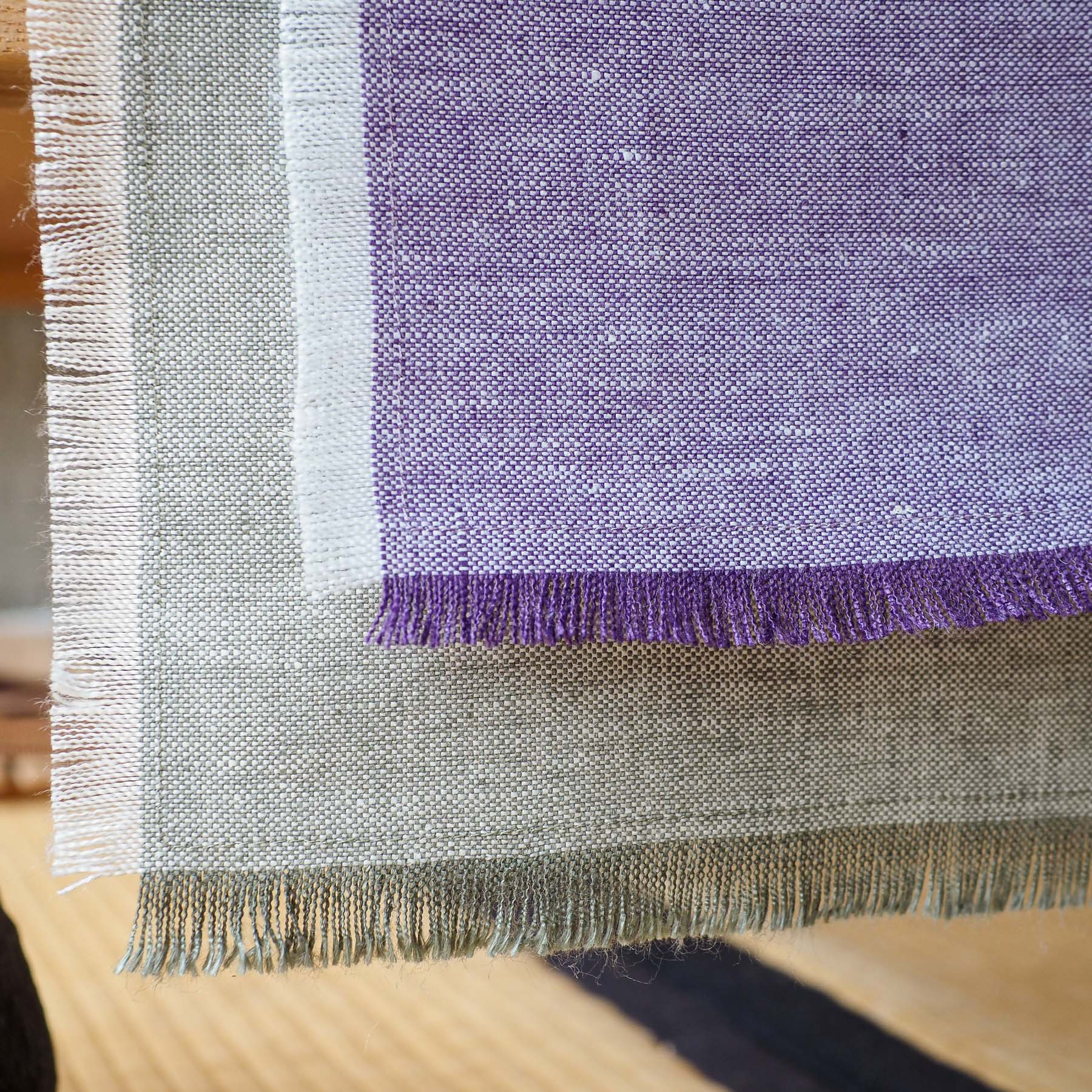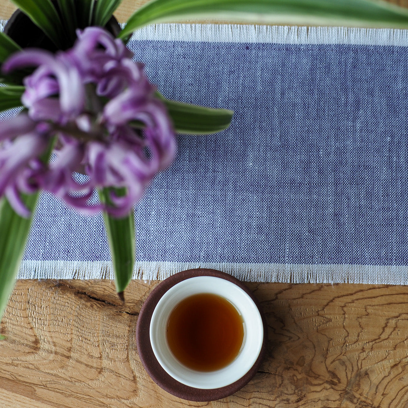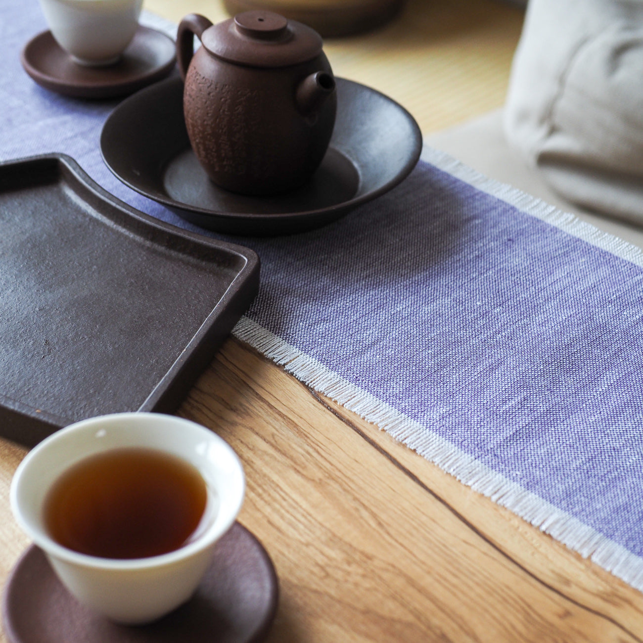 Woven from pure linen, this two-piece chabu set blends elegance with everyday functionality. The deep wisteria purple and soft sage green complement each other, creating a harmonious balance of color and texture. Use them together to create depth in your tea space or separately to suit different tea stages—one as a backdrop, the other as an accent.