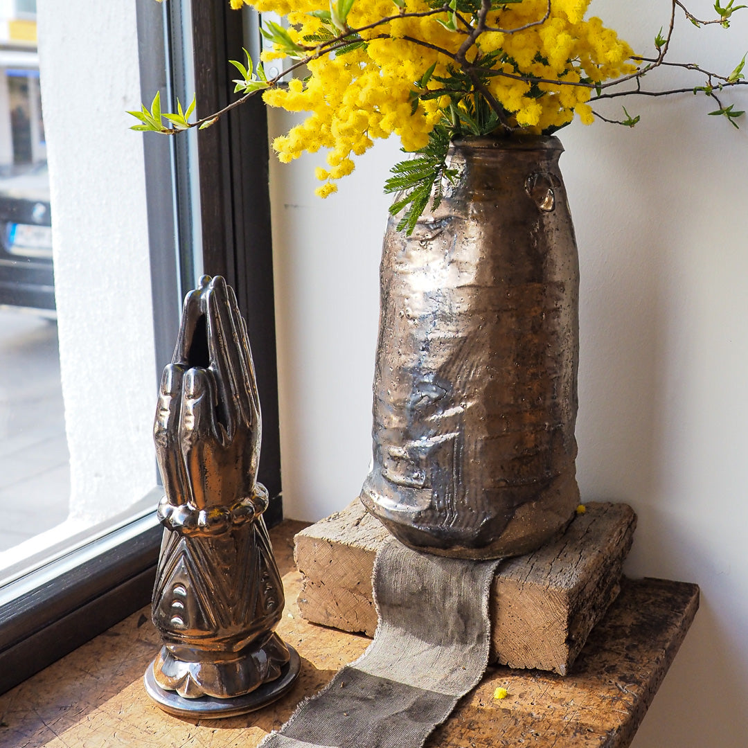 This ceramic incense holder is hand-crafted to bring joy to your eyes as well as your nose. The set includes a hands and a stand with a small ash bowl.