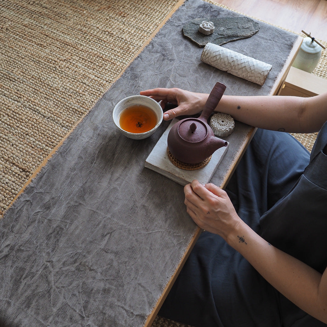 Care instructions: To keep the memories of your tea sessions and appreciate the aging of your chabu, avoid washing it. But if you must, hand wash it in lukewarm water with a gentle soap and flat dry. Iron on medium heat with steam.