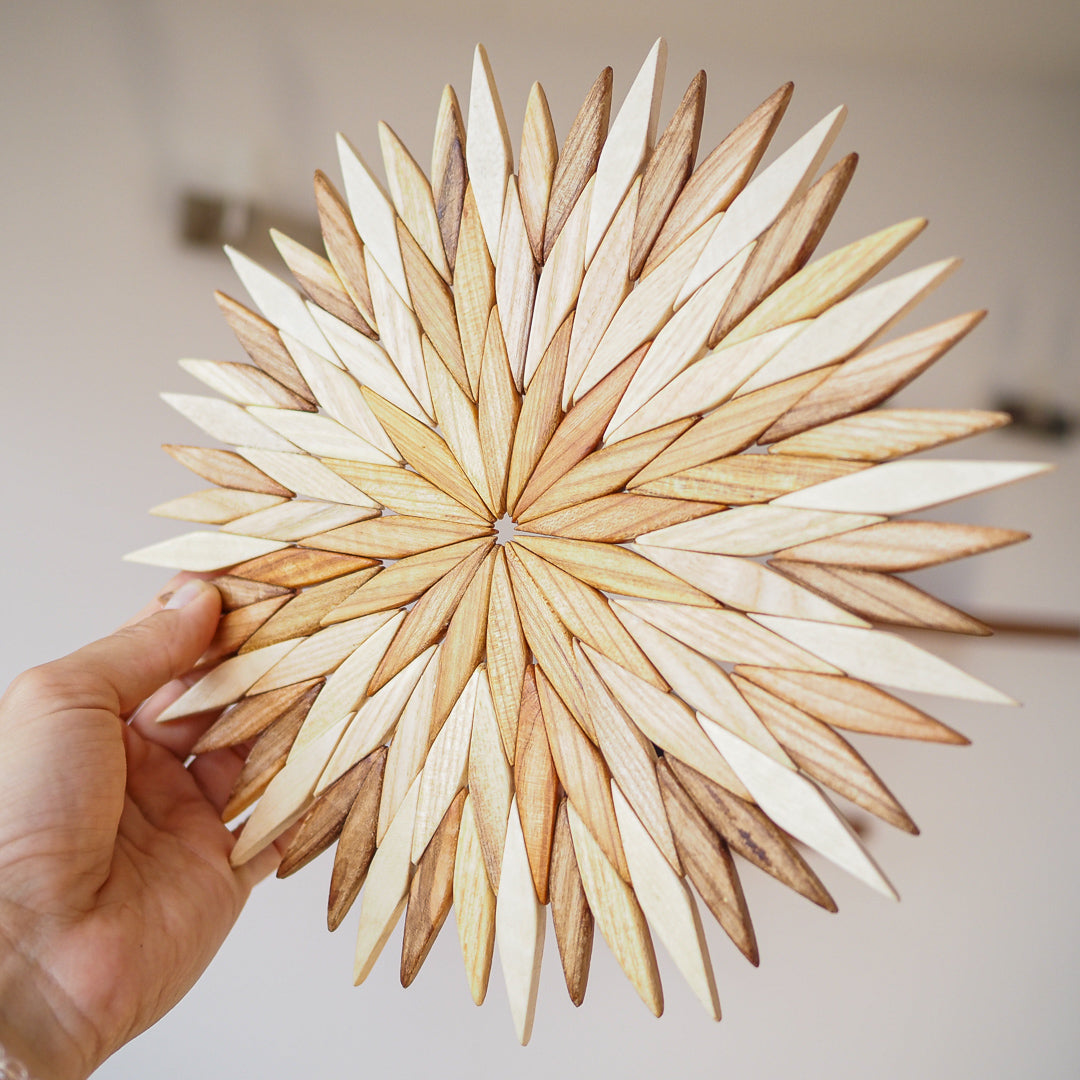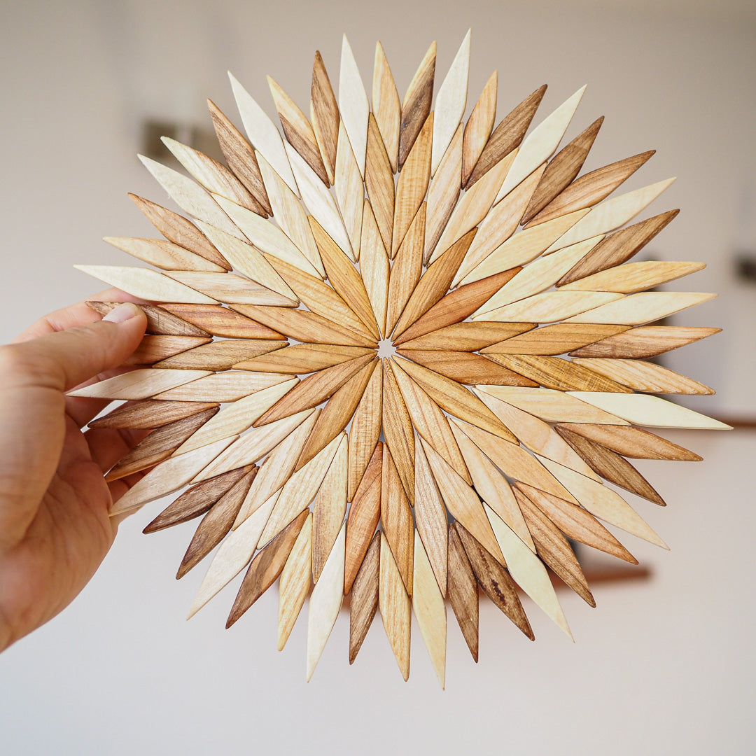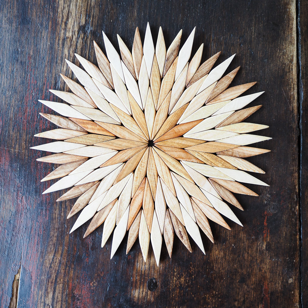 The quest for the perfect wooden stand took a while, but we've found a gem. Crafted from cedar, walnut and apple tree wood, these trivets are not glued but woven, ensuring their sturdiness. Each piece boasts distinct shades and varying wood color intensities, making it a beautiful and practical addition to your tea setup.
