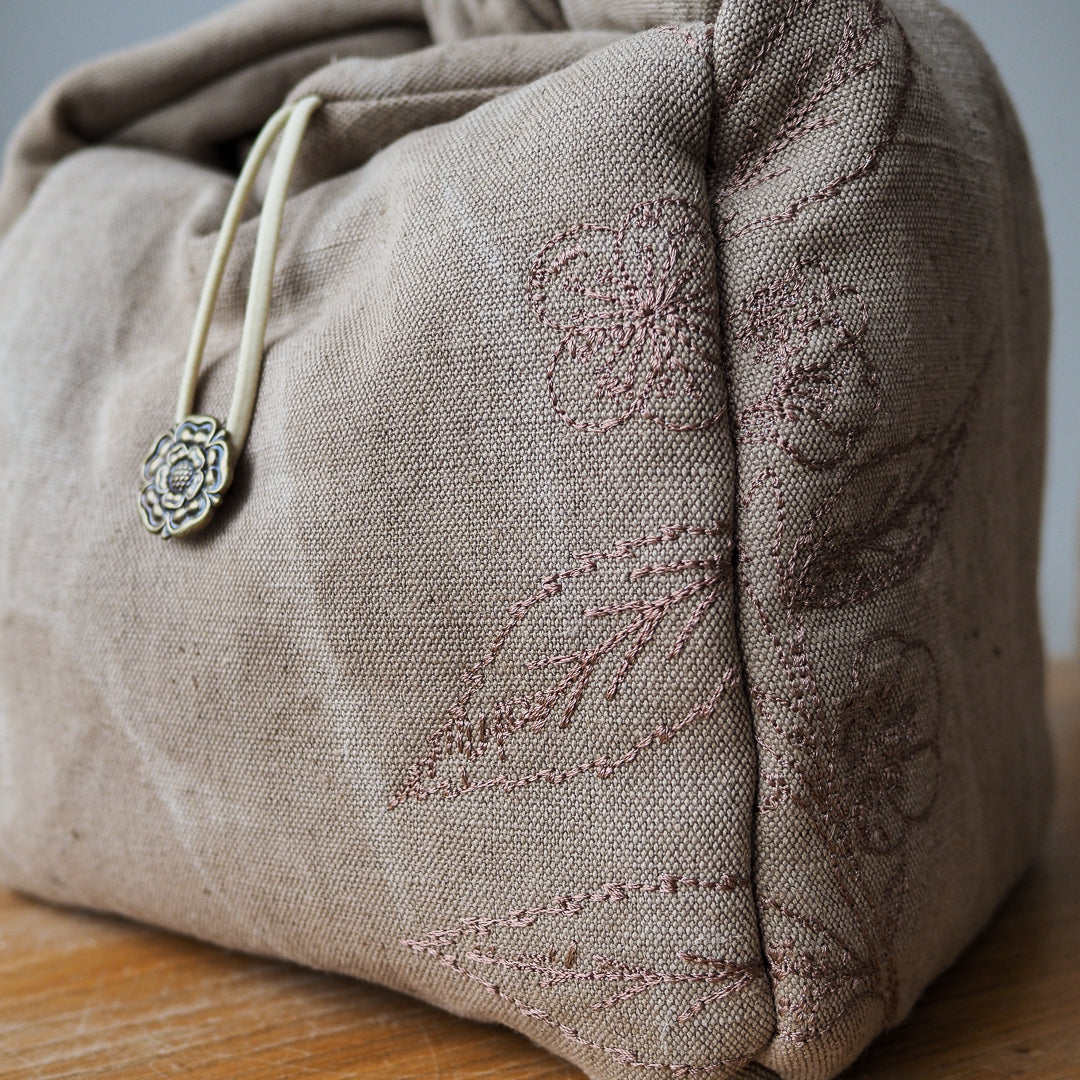 Tea-Dyed Travel Bag With Camellia Sinensis Embroidery