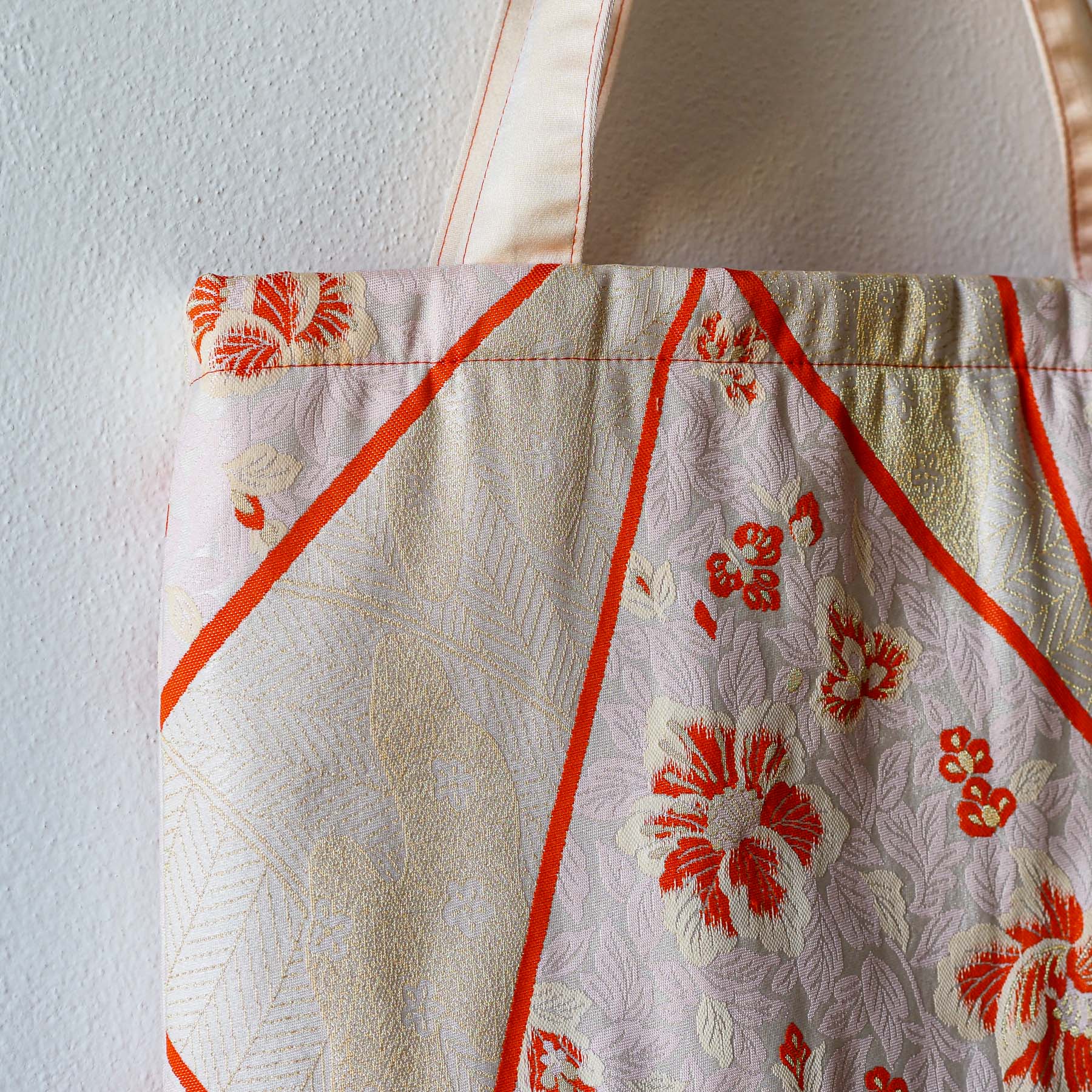 This one-of-a-kind tote bag, handcrafted from a vintage Japanese kimono obi. Each bag repurposing the beauty of traditional fabrics into something both functional and meaningful.