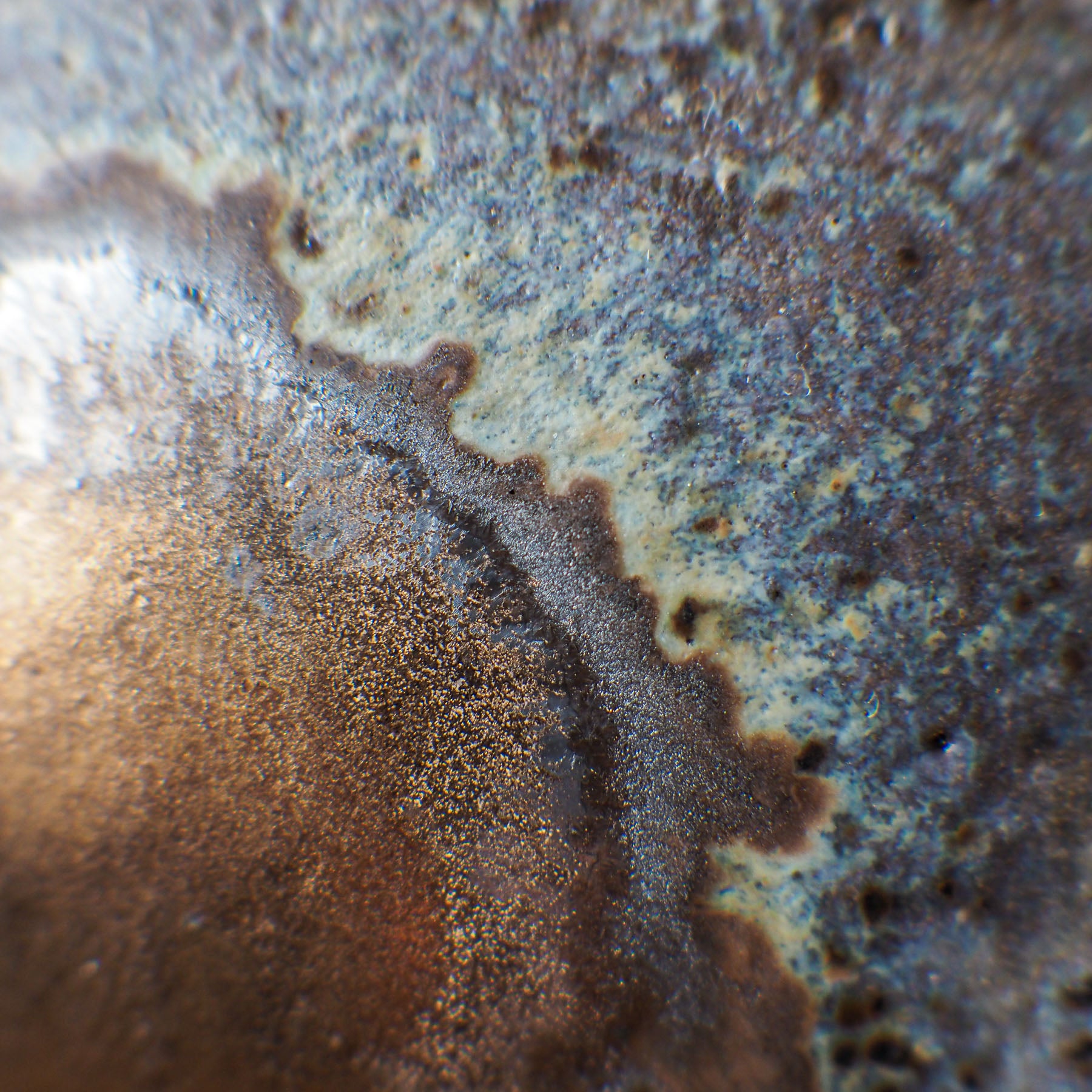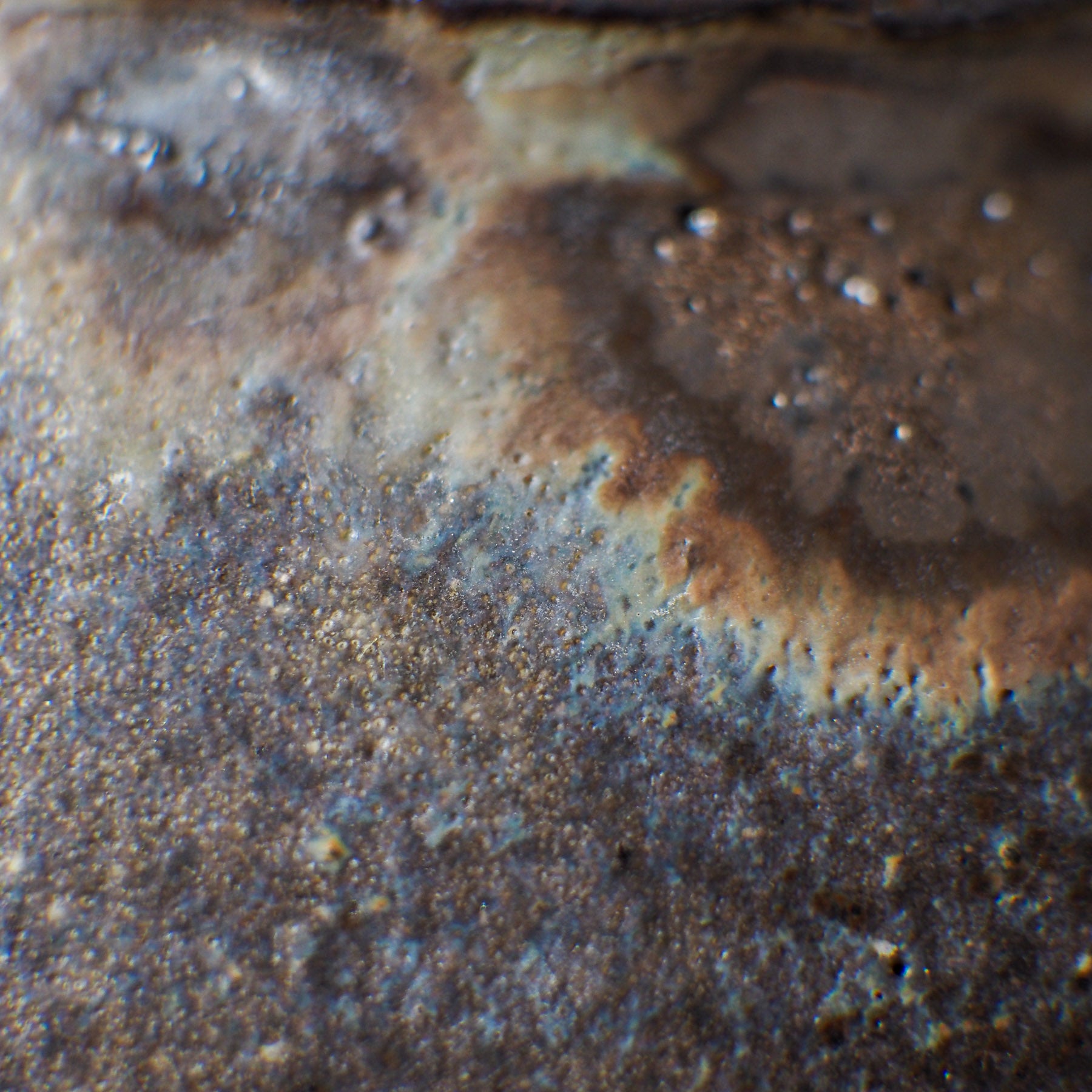 With a capacity of approximately 350–450 ml / 10.8–15.2 oz, it is designed for shared tea sessions — ideal for serving 3-4 bowls. It is glazed in a deep grey with golden inclusions, creating magical, one-of-a-kind markings. The surface blends dark, earthy tones with shimmering gold accents, like light breaking through stone. The contrast between its rough, timeworn texture and glowing highlights gives it an almost cosmic presence, as if shaped by nature itself. It doesn’t seek attention, but rewards those who take a moment to truly see it.